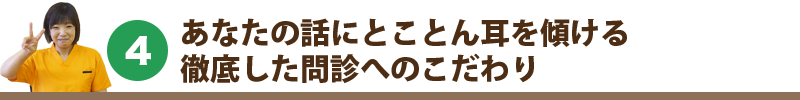 あなたが伝えたいことを全てお話しになって安心してからしか根本治療にならないと考えていますし、納得してからしか治療に入ることはありません。安心・納得して治療を受けたいという方はぜひ当院へお越し下さい。