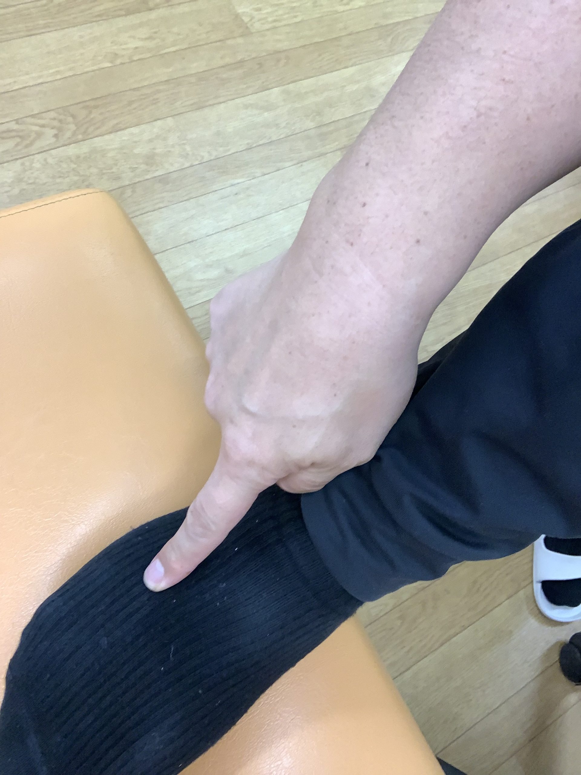 ちなみに腸脛靭帯を緩めるにはその足のここを押すと緩みますよ。