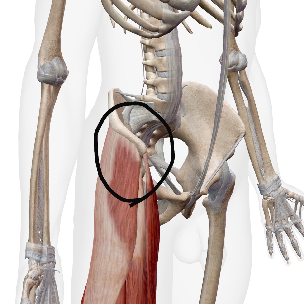 股関節の制限は大腿筋膜張筋や縫工筋、大腿四頭筋を緩めることで解消します。