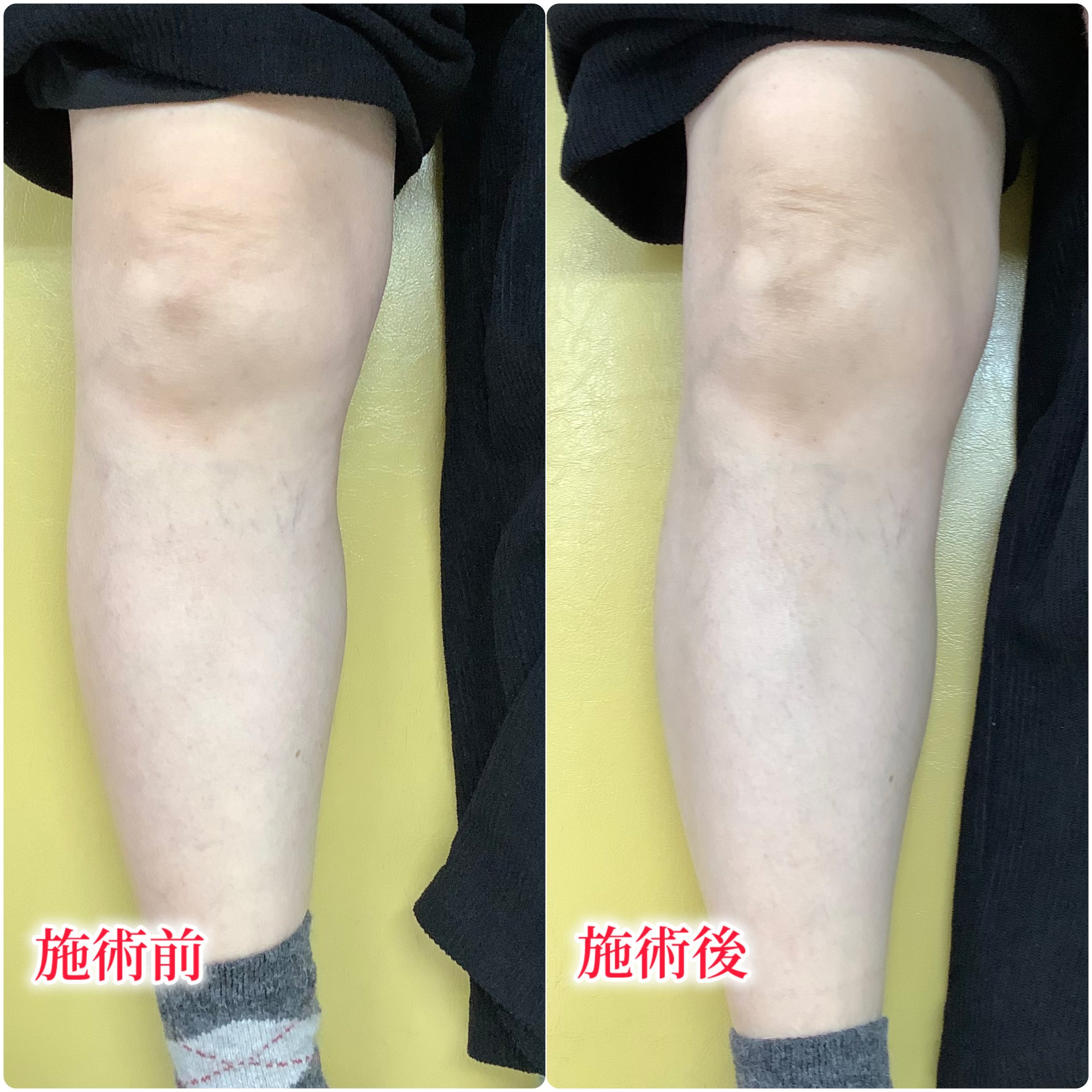 これは膝の痛い患者様の施術の前後の写真です。ねじれがなくなっているのがわかると思います。ねじれがあると膝の膝全体で荷重を分散できないので痛みが出ます。ちなみに施術の時間は5分前後です。