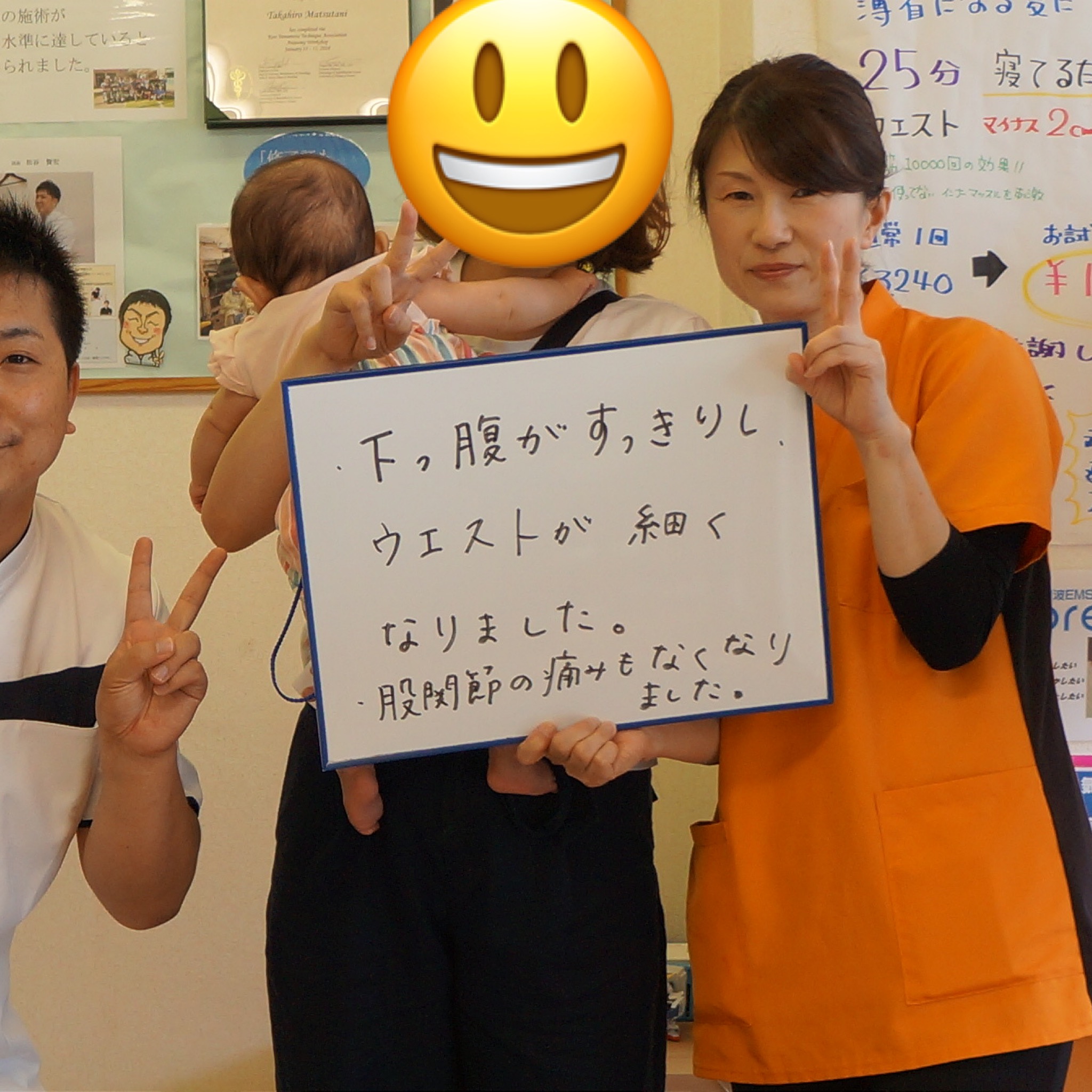 すねやふくらはぎの痛み(特に朝ひどかったですね)が取れて本当に良かったです。バランスも実感できるほどに良くなりました、バランスを崩していたからこそ出た痛みです。だからバランスが整えば足に痛みは出ません。今後もストレッチなど頑張ってください(^^♪ 喜びの声書いて頂きありがとうございました。