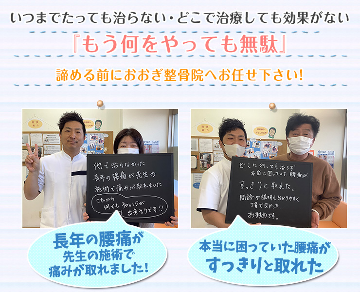 当院の施術で慢性腰痛のお悩みからすっかり解放された人たちを少しだけご覧ください^^